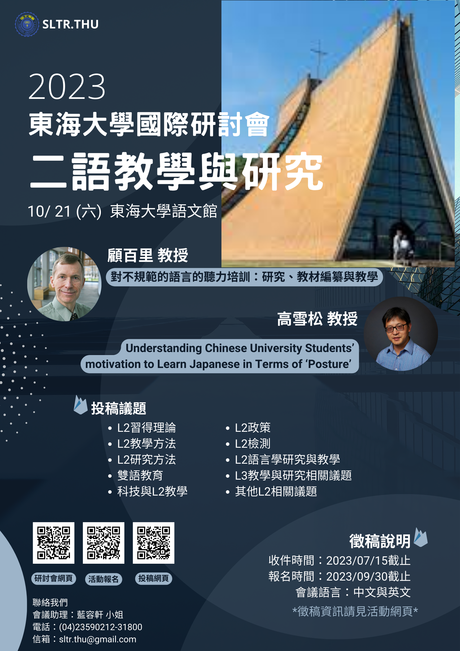主辦單位:東海大學外文系、華語文教學國際碩士學位學程、英語中心